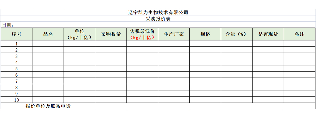 點(diǎn)擊右側(cè)下載:遼寧凱為生物技術(shù)有限公司采購報(bào)價(jià)表